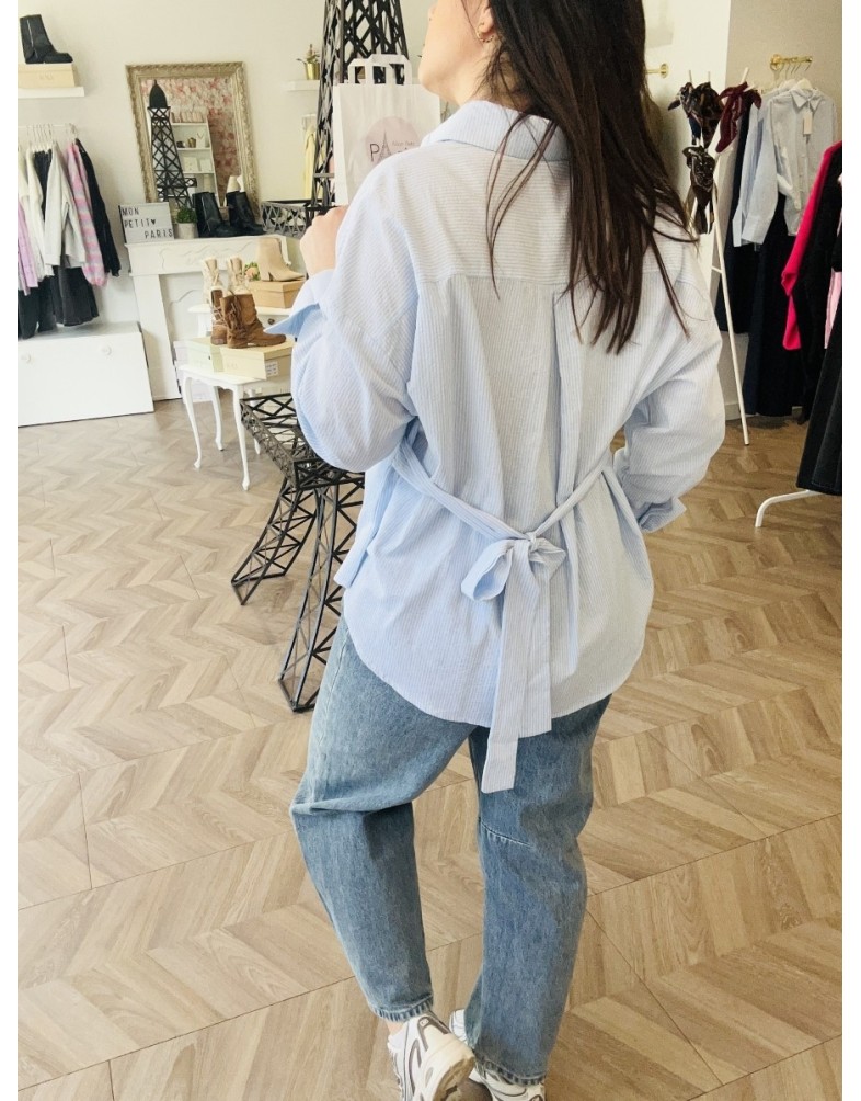 CHEMISE RAYEE NOEUD BLEUE
