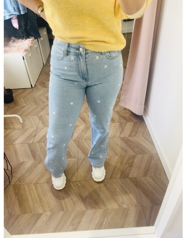 Jean souple et confort coupe straight avec petites fleurs brodées <3