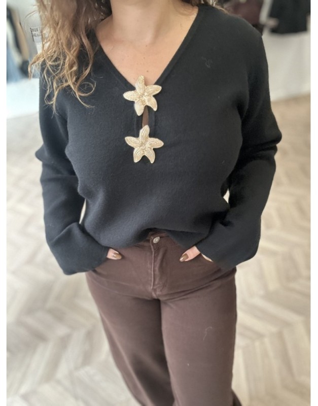 Joli pull col V avec deux étoiles dorées style broche <3